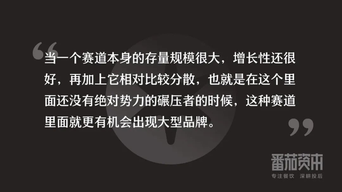 所以当你的赛道规模足够大的时候,在这种赛道当中你才有机会成长成一个相对成规模的餐饮品牌。
