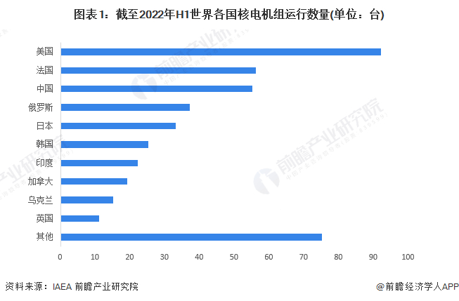 1、全球核电行业竞争格局:中美核电机组数量位于世界前列