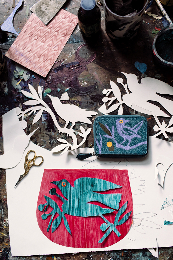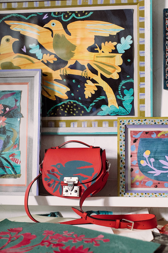 在此次特别合作中,Mark的剪纸艺术以MOYNAT独有的皮革镶嵌工艺生动呈现。每片皮革均以复杂工艺镶嵌拼接,构成无缝顺滑的图纹,以极繁诠释极简,打造呼之欲出的视觉效果。
