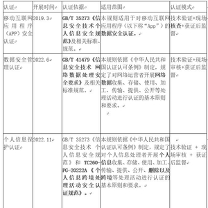 据智联出行研究院(ICMA)院长何姗姗介绍,移动互联网应用程序(App)安全认证、数据安全管理认证和个人信息保护认证共同构成了我国目前数据安全认证制度的内容,但它们认证的事项不尽相同。