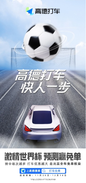 11月20日至12月18日期间,用户在高德地图APP搜索“打车免单”,可以根据世界杯球赛进程,每天参与球赛胜负预测,预测准确即可获得相应积分,累计积分可兑换打车券、代驾券、虚拟权益等。其中,预测准确次数最多的用户将被评为“大力神杯预言帝”,可以获高德打车全年免单权益(即按照全年365天每天打车免单100元计算,共计现金36500元)。