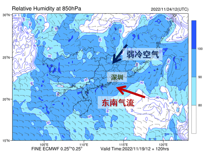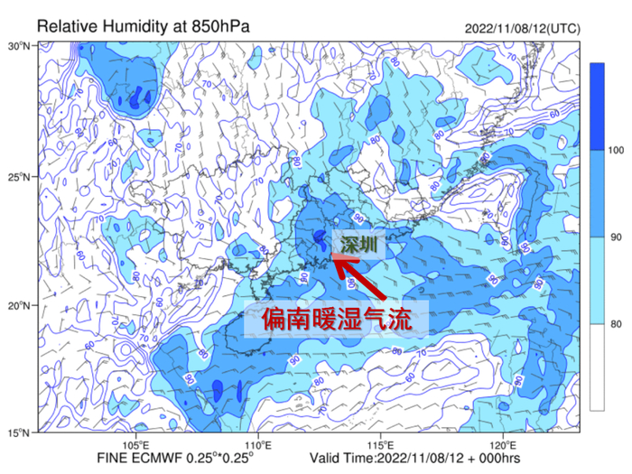 11月开始,偏南暖湿气流强盛,给我国江南、华南地区带来了充足的水汽。