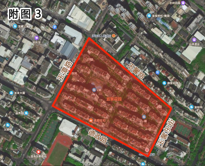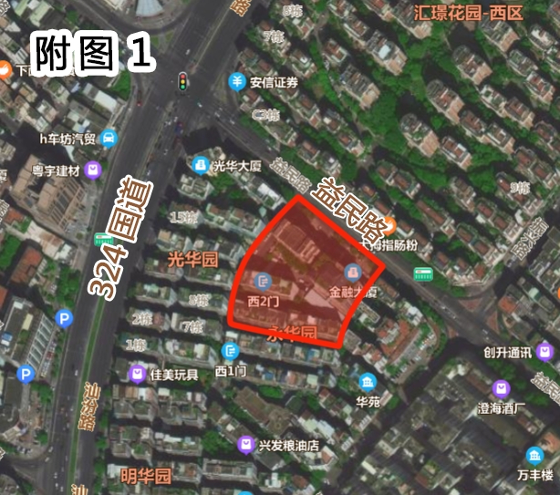 (一)金融大厦,澄海农商银行办公楼,永华园8栋、9栋、11栋合围区域;(见附图1);