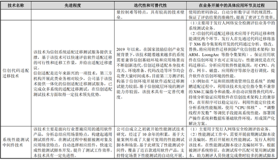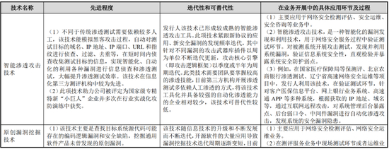 (1)发行人为客户提供网络安全和信息技术咨询等服务,具有智能渗透攻击技术、原创漏洞挖掘技术、商用密码应用安全性检测技术等8项核心技术。
