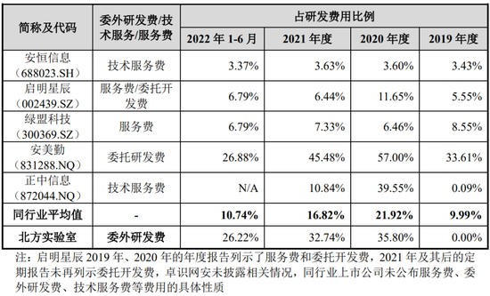 据披露,发行人查询同行业企业委外研发情形,具体情况如下: