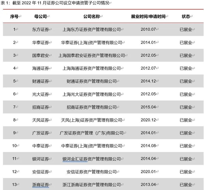 两种业务开展模式,逐步向资管子转移。证券公司资管目前开展业务途径有两种,一种是传统的证券公司总部部门模式,另一种是相对独立的资管子公司模式。自2010年行业第一家资管子公司东方红资产管理设立以来,多元化资管产品发展的需求、聚焦主动管理产品能力的提升,投研+资管业务高效率运作要求促使券商纷纷申请设立资管子公司,将资产管理业务剥离,特别是在2020年“一控一牌”政策的征求意见发布后,券商设立子公司动作加快,截至2022年11月,证监会共计批复设立24家券商资管子公司,另有包含头部中信证券、中金公司、中信建投等12家券商资管子公司处于申请设立排队行列中。