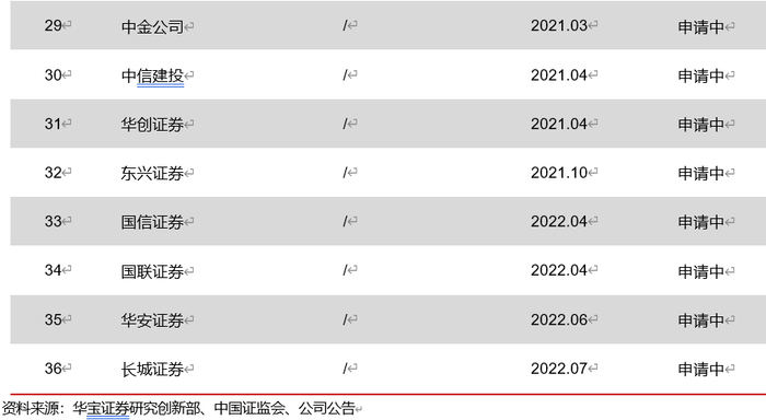 再次,以券商总部申请公募牌照的方式也是直接能解决大集合资管计划改造的途径。但是从截至11月的证监会披露审核进程来看,已经没有券商选择这种方式,在资管子的诸多优势下,直接申请虽然获批之后也能解决当前的资管产品改造问题,但失去了机构业务收入增长的机会。
