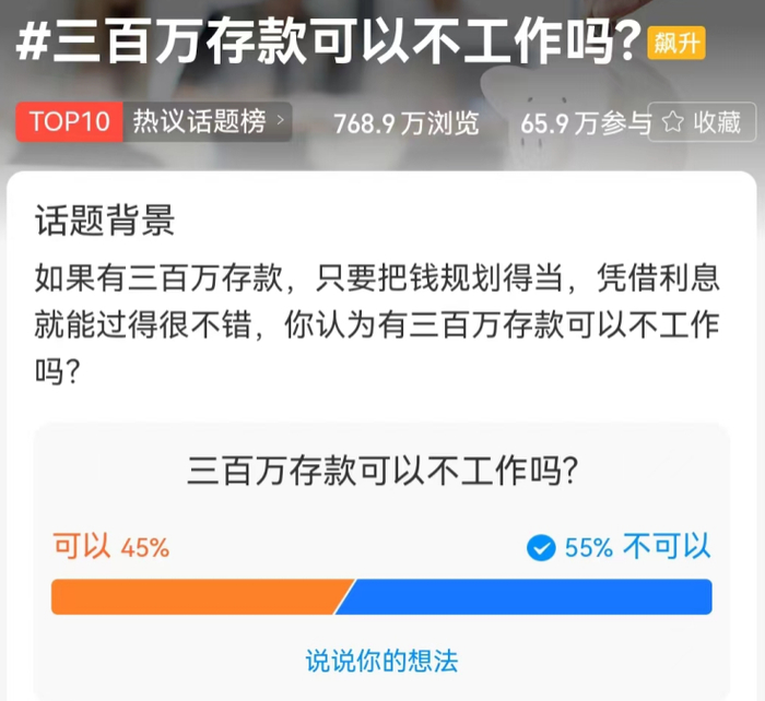 引发热议!有300万存款,可以“躺平”吗?你怎么看?