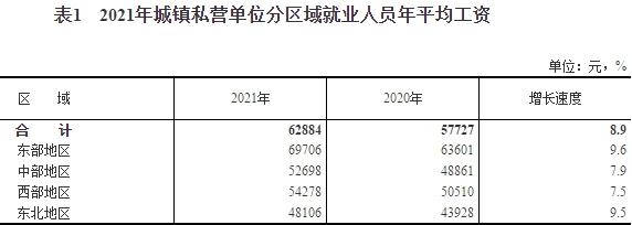 国家统计局今年最新发布的数据显示:2021年城镇非私营单位就业人员平均工资为10.68万元;东北地区最低,为8.36万元;东部地区最高,达12.4万元。