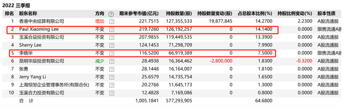 wind数据显示,Paul Xiaoming Lee和李晓华持股比例占恩捷股份的21.64%
