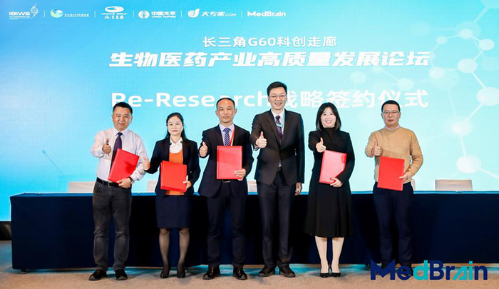 在长三角G60科创走廊生物医药产业高质量发展论坛上,大专家.COM与四川科伦药业股份有限公司、海南久常制药有限公司、哈尔滨业锐药业、济川药业集团有限公司、湖北午时药业股份有限公司进行Re-Research签约仪式。大专家.COM的医学智慧数字化产品——MedBrain将为医药企业上市后产品的二次研发提供支持,赋能生物医药产业创新,为生物医药企业高质量发展提供有力支撑。