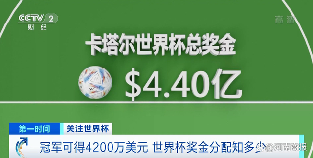 冠军可得4200万美元,世界杯奖金分配知多少