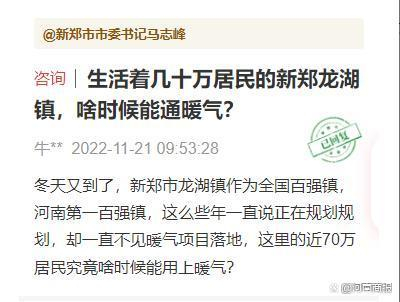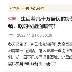 也有回复显示,新郑市正在积极引进新的热源项目,待新的热源项目实施后,集中供热将统筹安排、迅速发展,使未参加集中供热区域的居民早日用热。