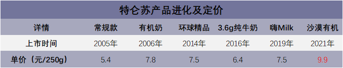 以特仑苏为例,经过6次产品更新迭代,单价从最初的5.4元增长至9.9元。成立不过7年的特仑苏,到2021年销售额已经达到300亿元,为蒙牛贡献近三分之一的营收,受高端产品提振等影响,2005年到2021年,蒙牛毛利率也上涨了约14个百分点。