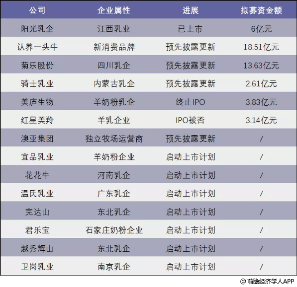 2022年又迎来了一波新老乳企上市高潮,阳光乳业5月成功上市后,陆续有13家乳企启动上市计划,既有河北老牌乳企君乐宝,也有以“替用户养牛”营销出圈的新锐奶企“认养一头牛”。