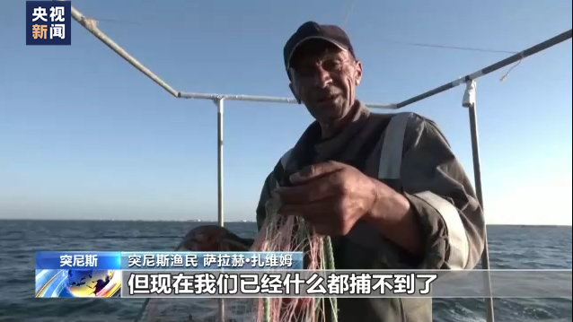 突尼斯渔民 萨拉赫·扎维姆:这种蓝蟹出现以前,我们是能捕到鱼的,但现在我们已经什么都捕不到了。