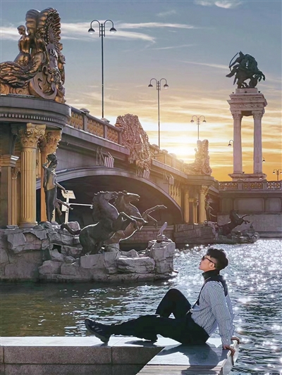 马琳:许多做短视频的人都是属于人文摄影师,人文摄影师基本上就记录个人生活。旅行摄影记录身边的美景,旅行是很少有人露脸,只是录个后背或者侧脸。人像摄影就突出人物。咱天津有很多建筑摄影拍得都特别好,但我把人物和建筑融合在一起,就不仅要表现出这个建筑美,还要突出人物,所以这就是我说的“告别游客照”。