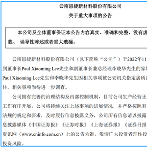 公告显示,恩捷股份于11月20日获悉李晓明及李晓华被监视居住,相关事项尚待进一步调查。根据相关规定,被公安机关指定居所监视居住,最长期限为6个月。