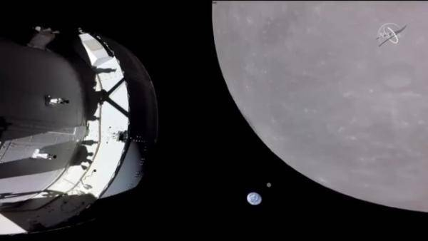 猎户座飞船成功飞越月球,传回月球与地球同框画面
