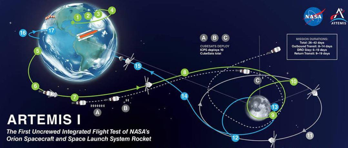 “阿尔忒弥斯1号”任务轨迹。