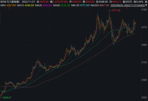 从业绩表现来看,近期住友商事将全年净利润预期上调了近一半,至5500亿日元(约合37亿美元);丸红社将利润预期上调至历史最高水平;伊藤忠商事第二财季利润超过分析师预期;三井物产此前也预期,本财年净利润将攀升至创纪录的9800亿日元。