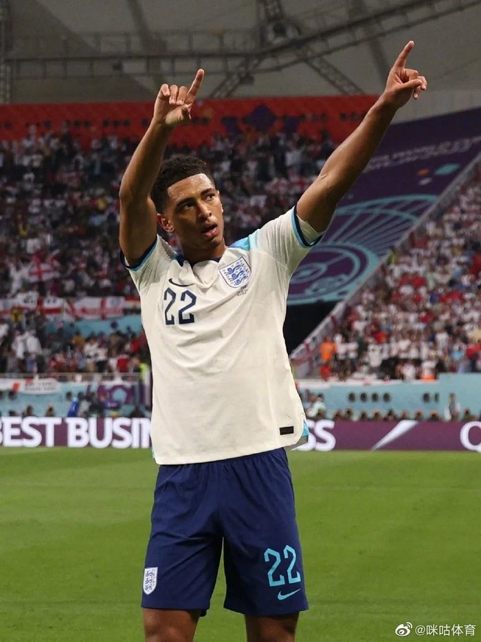 激烈的身体对抗,让裁判屡屡吹停比赛,比赛打得断断续续。第35分钟,卢克·肖在左路传中,皮球带着强烈的旋转,贝林厄姆跳球用头一蹭,皮球钻入球门远角。贝林厄姆只有19岁零145天,成为英格兰队在世界杯进球的第二年轻的球员,仅次于1998年进球的迈克尔·欧文,当时他是18岁零190天。出生于2003年的贝林厄姆也成为世界杯第一位进球的“00”后。