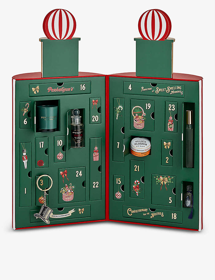 Penhaligon's潘海利根圣诞倒数香氛月历,今年以马戏团为主题,红白相间的巨大马戏棚,包括香水、香薰蜡烛与挂饰等内容,可以一次集齐多款品牌经典的小香水和香氛蜡烛。