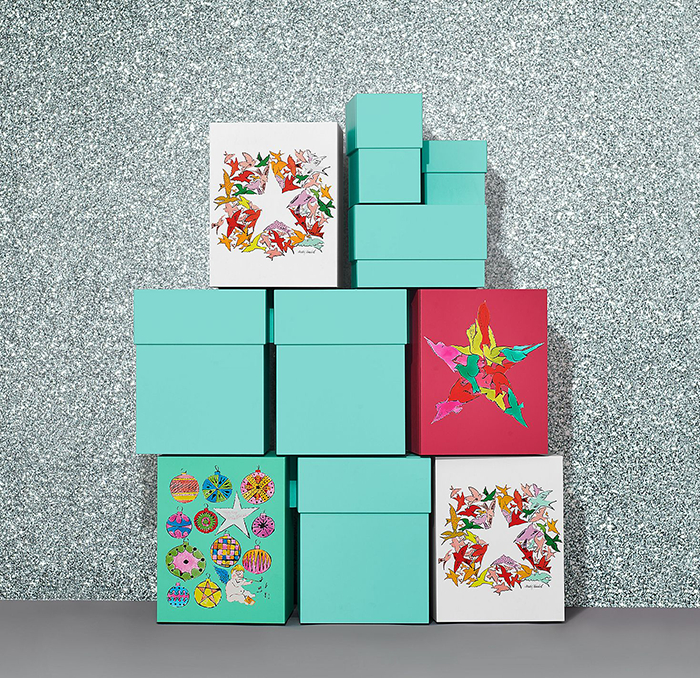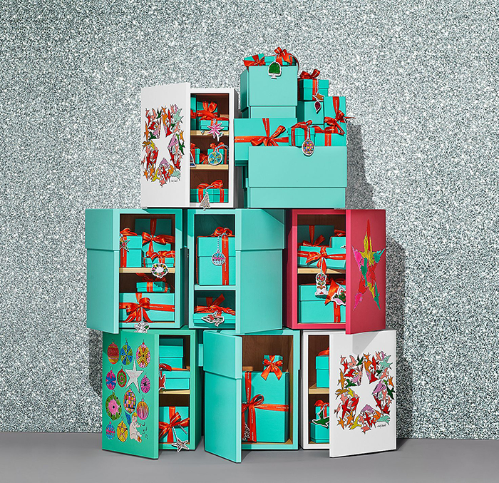 Tiffany蒂芙尼今年的限量版节日倒数日历的灵感源自安迪·沃霍尔(Andy Warhol)在 20 世纪五六十年代为蒂芙尼设计的节日贺卡。定制日历饰以艺术家的节日插画和品牌全球知名的配色,搭配蒂芙尼精选华丽作品,配有蒂芙尼蓝色礼盒。打开后呈现 24 件精美绝伦的礼品,包括璀璨的钻石和华美的珠宝,带数字标的吊牌饰以艺术家画作。