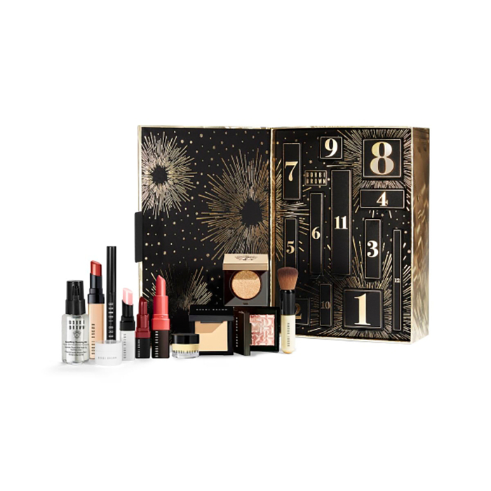 Bobbi Brown芭比波朗推出璀璨星夜倒数日历,共12项品牌经典明星商品,每天打开都惊喜满满。外盒为华丽耀眼的金色,以梦幻星光演绎纽约街道闪烁光芒,充满节庆氛围。内容物包含多项明星商品,如“五花肉”高光、金致水光唇膏等美妆产品,也有维他命完美乳霜等护肤单品。