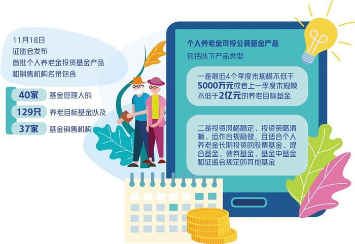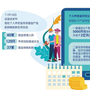 11月18日,证监会发布首批个人养老金投资基金产品和销售机构名录,包含40家基金管理人的129只养老目标基金以及37家基金销售机构。