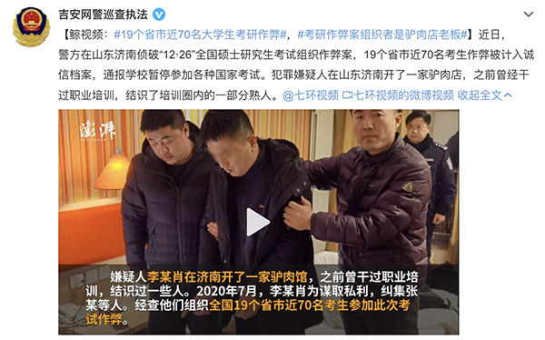 一则组织研考作弊的案件被曝光。
