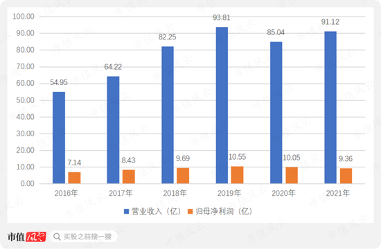 2016年-2019年,华润双鹤营业收入和净利润稳步上升;2019年-2021年,华润双鹤陷入发展瓶颈阶段,盈利能力止步不前。