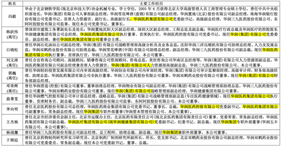 从高管简历可以看出,很多董监高都是华润医药集团或者华润集团的背景。
