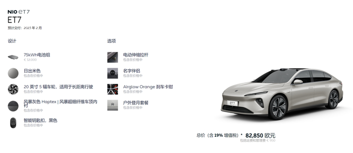 其中根据官方公布的信息,蔚来在德国的售价如下: