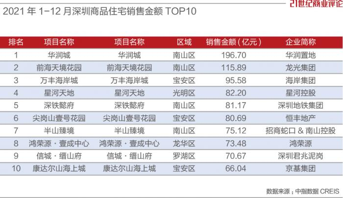深圳各色商业项目,2021年销售额超过10亿,只有16个,鸿荣源占到两席,合计百亿,这绝非只是运气。