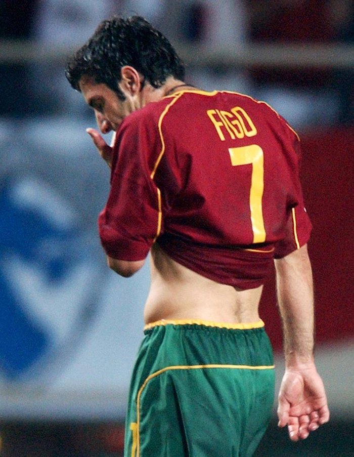 ↑2002年韩日世界杯小组赛,葡萄牙队未能出线,核心菲戈黯然神伤。