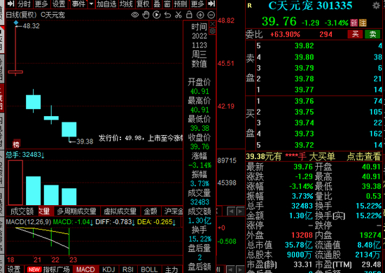 比如近日上市的天元宠物,是乖宝宠物的同行,发行价格49.98元,最新股价39.76元,市盈率29.48,低于中宠股份和佩蒂股份的市盈率平均值。