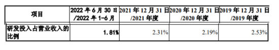 同期,乖宝宠物研发投入占营业收入的比例2.53%、2.19%、2.31%、1.81%,远远低于销售费用的占比。