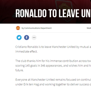 11月23日凌晨时分,一则消息让熬夜的球迷们暂时把注意力从世界杯上移开:英超豪门曼联俱乐部官方宣布,C罗离队且立即生效。