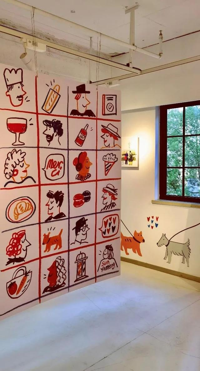 从进入楼梯间开始,你已经乘坐上了一班巴黎地铁,开始了“巴黎的一天”。萌萌孙擅长以针管笔和彩铅作画,明亮鲜艳的色彩。