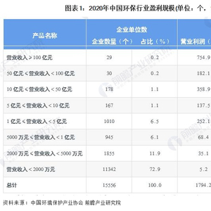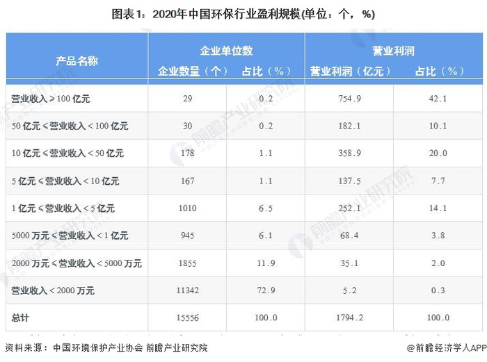 注:《中国环保产业发展状况报告(2021)》于2022年1月17日发布,截至2022年11月10日,《中国环保产业发展状况报告(2022)》尚未发布,故此处以2020年数据为例,仅供参考,下同。