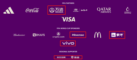 11月21日零点,卡塔尔世界杯首场比赛卡塔尔vs厄瓜多尔开踢,绿茵场周围LED广告屏出现了万达、海信、蒙牛、vivo、雅迪和BOSS直聘等中国企业的身影。其中,万达是国际足联合作伙伴,vivo延续上届,连续两届作为世界杯全球官方赞助商。海信与世界杯结缘更早,2006年,“海信未来发展,大头在海外”被正式确立为海信集团的国际化战略。随后,海信大力发展体育营销。BOSS直聘是本届世界杯亚太区域的官方赞助商,还冠名赞助了央视世界杯的直播。而上一届的另外两家区域赞助商——帝牌(男装)和指点艺境(科技)没有续约。