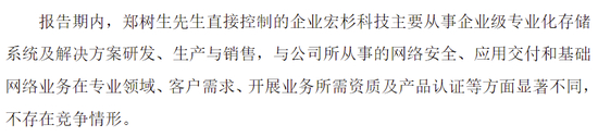 迪普科技招股书解释迪普科技与杭州宏杉在专业领域、客户需求、开展业务所需资质及产品认证等方面显著不同,不存在竞争情形。