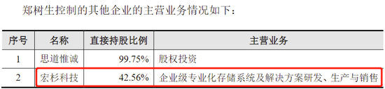 迪普科技2019年4月12日在深交所创业板上市,主营业务为从事企业级网络通信产品的研发、生产、销售以及为用户提供相关专业服务。迪普科技招股说明书显示,当时郑树生持有杭州宏杉科技股份有限公司42.56%的股份,宏杉科技的主营业务为:企业级专业化存储系统及解决方案研发、生产与销售。