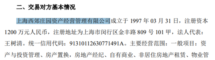 金安国纪此次购房,交易对方为上海西郊庄园资产经营管理有限公司,是上述物业公司的第二大股东,且最终实控人相同。