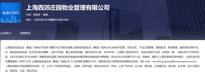 公开资料显示,西郊庄园位于上海市闵行区华漕镇,占地1500亩,属于上海顶级别墅、国际化住宅小区,一期、二期分别于2002年底、2003年底竣工并交付使用,并在2003年“上海第三届优秀住宅”评选中获得金奖。