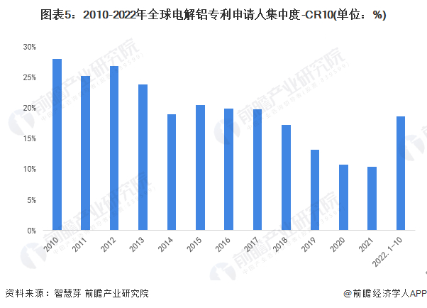 收藏!2022年全球电解铝行业技术竞争格局(附区域申请分布、申请人排名、专利申请集中度等)