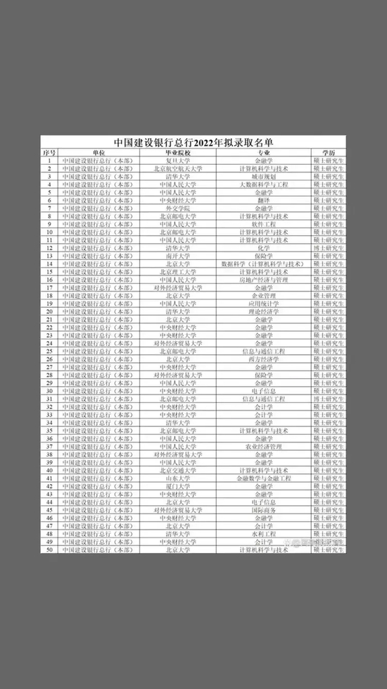 建行拟录取名单中,清一色名校研究生,高考分层次,就业层次分?