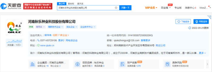 天眼查信息显示,秋乐种业成立于2000年12月,2014年8月在全国股转系统挂牌,后于2022年6月15日调至创新层。公司是一家集玉米种子、小麦种子、花生种子等农作物种子的育种、扩繁、加工、推广、销售和技术服务于一体的生物育种创新企业。