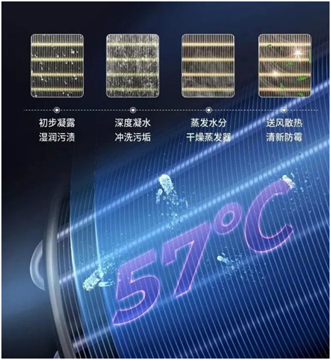 而且,这两款空调均搭载了57℃高温自清洁功能,蒸发器结霜、膨胀剥离、化霜、烘干有效去除蒸发器上附着的灰尘,让空调吹出干净风,保持室内空气清新,守护家人健康呼吸。